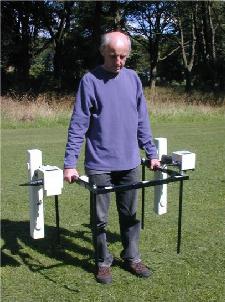 The system can be used in either parallel or zig-zag survey mode. When used in zig-zag mode the operator, not the frame, turns around at the end of a traverse, thereby avoiding the introduction of direction dependent heading errors (see movie clip below). Since there is no need for restrictive harnesses, turnaround is very rapid. The start/stop sample trigger button on the FM256 is replicated twice on the frame to cater for operator orientation during zig-zag surveying. Logging is simply performed by pressing the start/stop button. The four legs allow the system to be rested on the ground anywhere during survey - no need to return to a centralised support tripod. The frame is designed to support just one gradiometer at a time when resting on the ground, allowing each gradiometer to be aligned individually. The frame can also be used with the legs removed for operation over very overgrown areas.